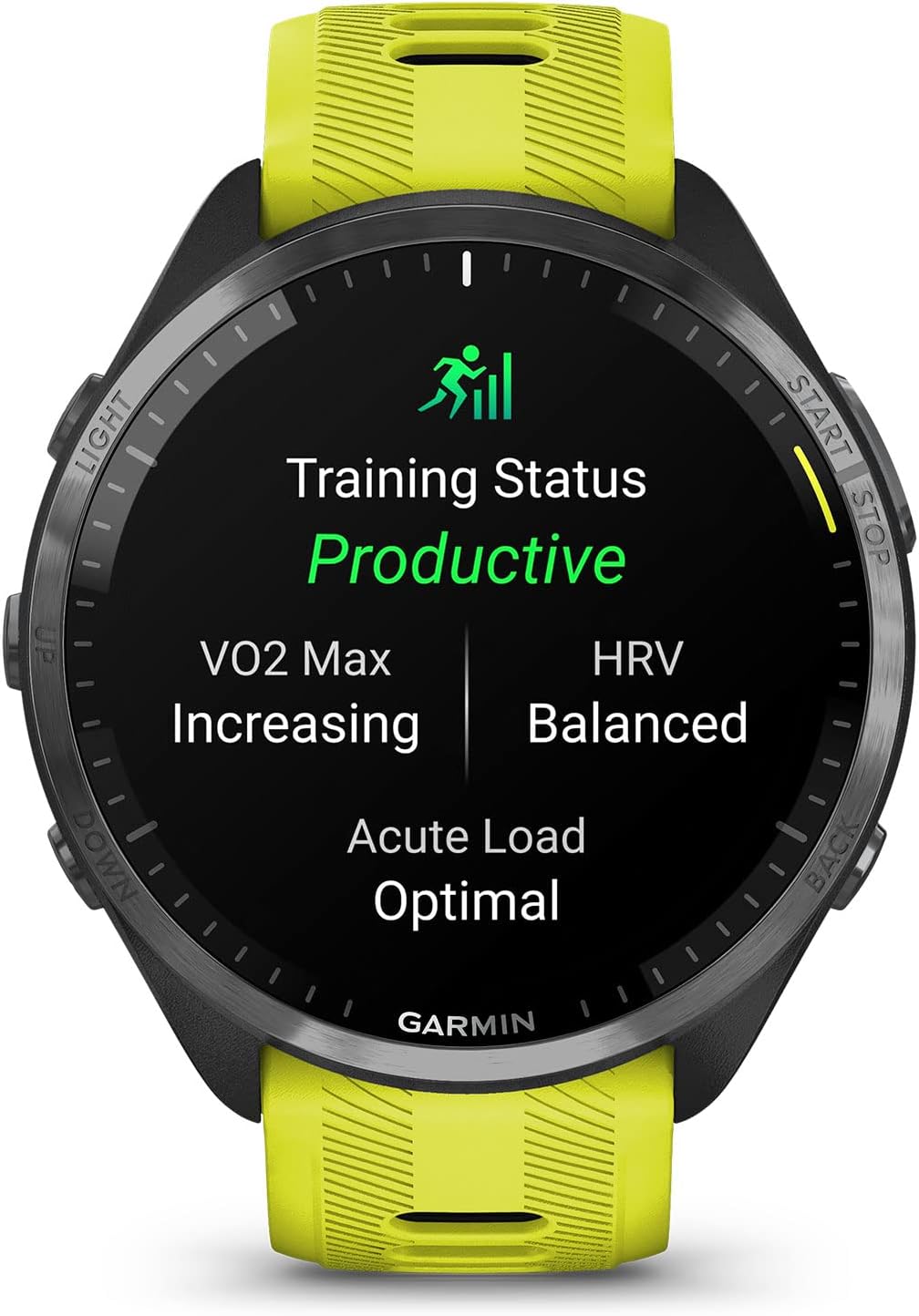 • Comprehensive Training Insights: Gain deep insights into your training status, including whether you’re training productively, peaking, or strained, based on indicators like HRV status, recent exercise history, and performance.