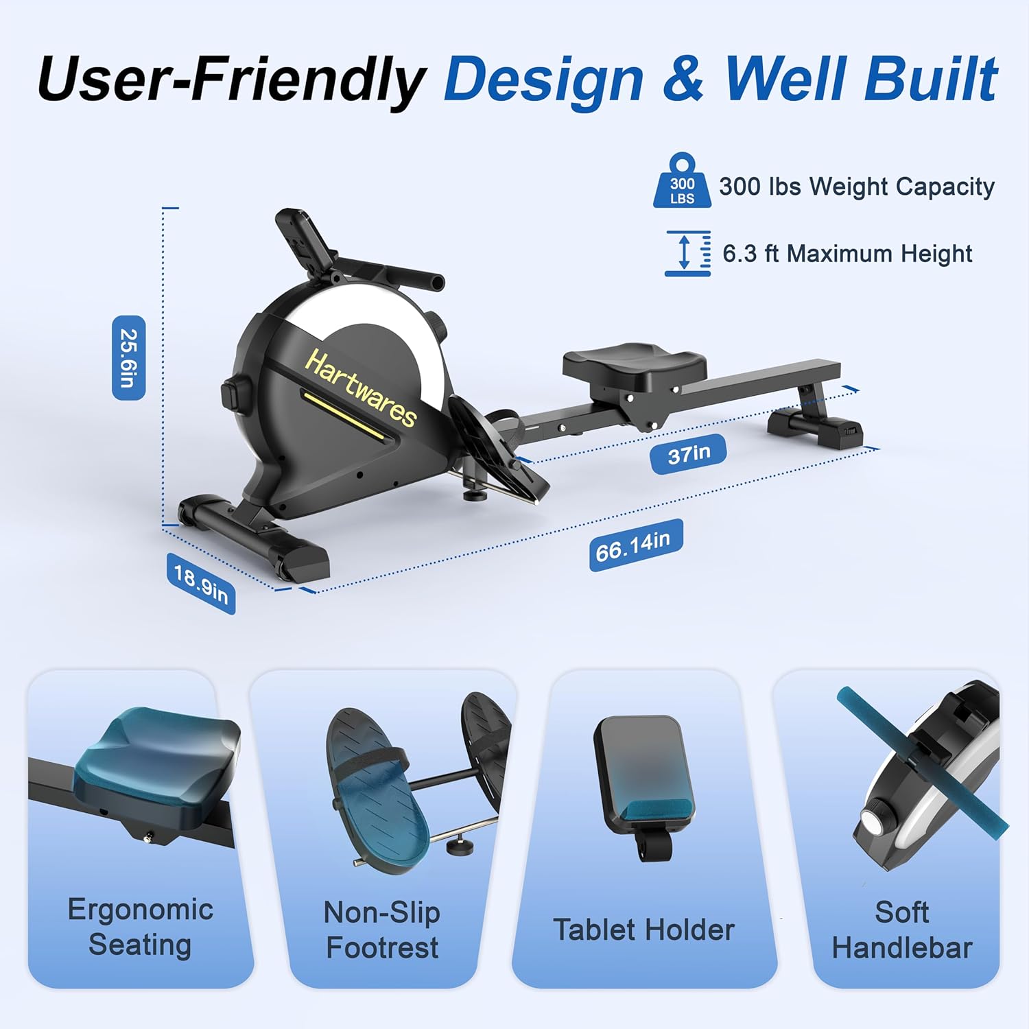 - Ultra Quiet Magnetic Belt Drive: Thanks to the magnetic resistance and smooth belt system, this rower operates under 20 dB. Perfect for early morning or late-night workouts.