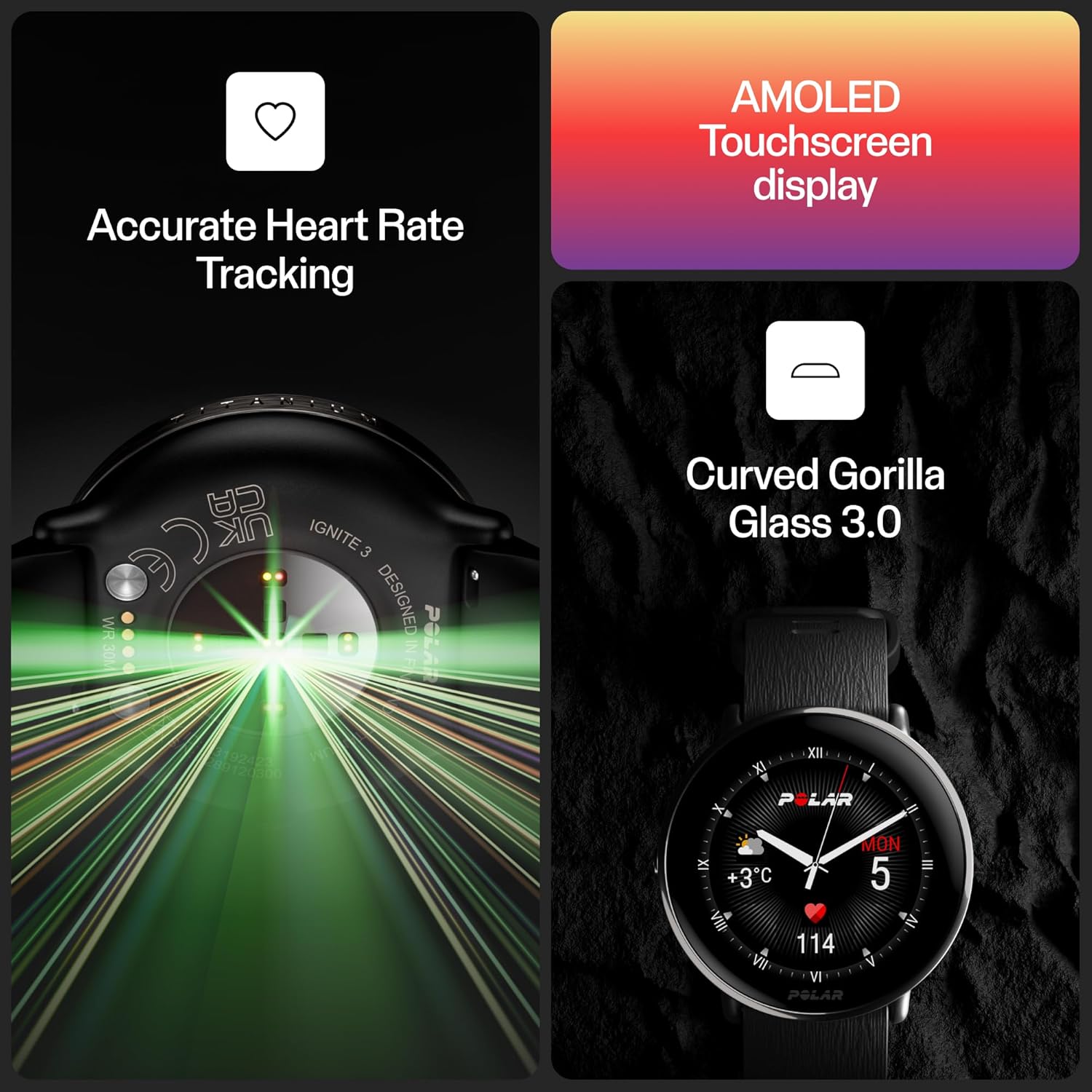 If you’re looking for a smartwatch that goes far beyond step counting, the Polar Ignite 3 Titanium is your ultimate companion. With its smart coaching, sleep insights, and professional-grade GPS and health tracking, this watch empowers you to make smarter decisions about your training, recovery, and overall well-being—all while wrapped in a stylish, rugged titanium design.